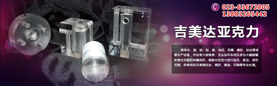 重慶吉美達有機玻璃制品有限公司于2012年4月份座落西部-重慶,是西南地區較早從事亞克力(有機玻璃)制品生產的專業企業。擁有車、刨、銑、鉆、鋸、油壓、花槽、磨砂、拉絲等成套生產設備,并設有大型烤房、無塵絲印車間及多臺大幅面鐳射激光切割機和雕刻機,能夠對亞克力進行鉆孔、修邊、異形切割、熱彎成形及表面拉絲、噴砂、噴油、印刷等專業處理。 公司在重慶市區設有工廠,2000平方米的生產場地,在重...
